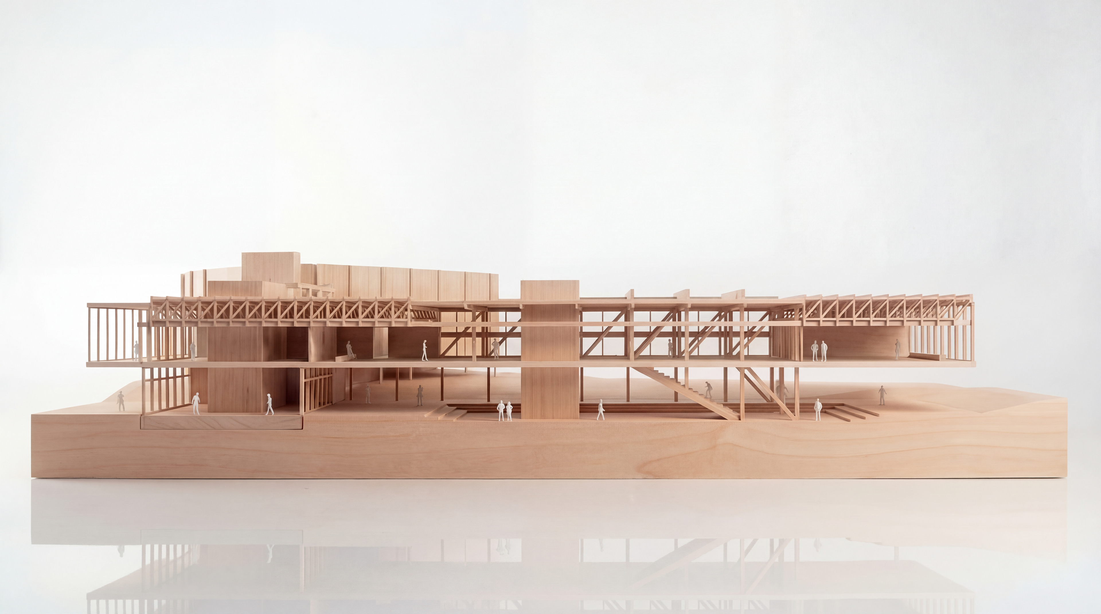 The museum buildings are carefully crafted to blend into the surrounding landscape, minimizing their visual impact while framing moments of spatial intensity within. Subtle massing, controlled daylight, and material restraint create world-class gallery environments that support a wide range of contemporary art practices. Outdoor paths, plazas, and landscaped roofs dissolve the boundary between building and terrain, inviting the community to engage with art through movement, pause, and discovery.